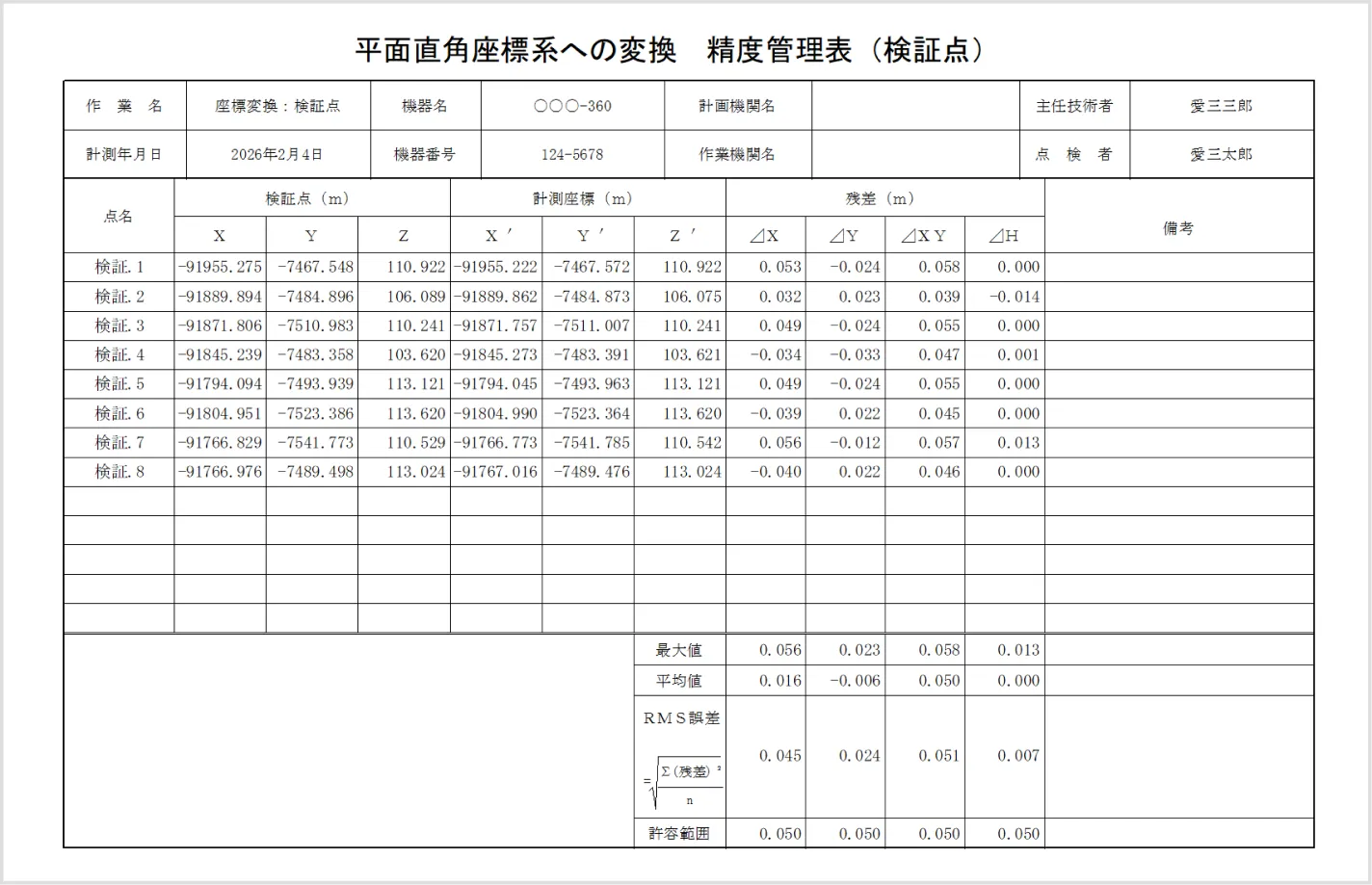 点検データを作成し INFINITYで精度管理表出力